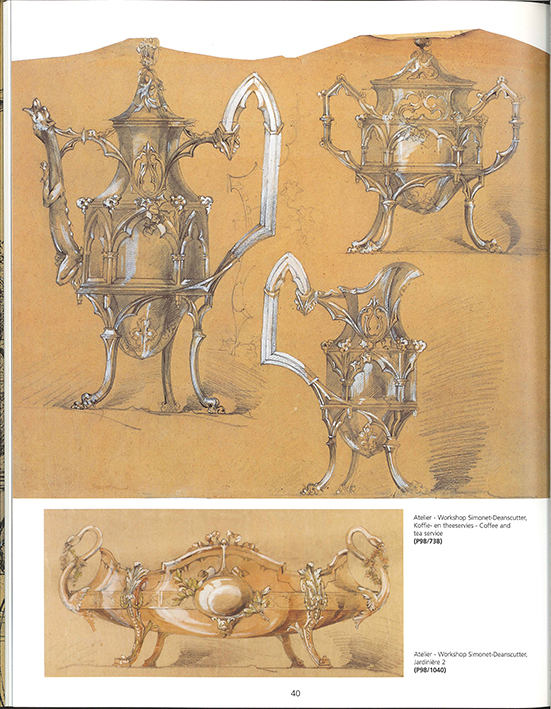 In diesem Museum Katalog werden 3.068 Konstruktionszeichnungen für privates und religiöses Tafelsilber aus dem neunzehnten und zwanzigsten Jahrhunderts beschrieben und abgebildet. Die Entwürfe stammen aus den den belgischen Werkstätten Simonet & Vansteeger, Dom Martin & Wolfers.